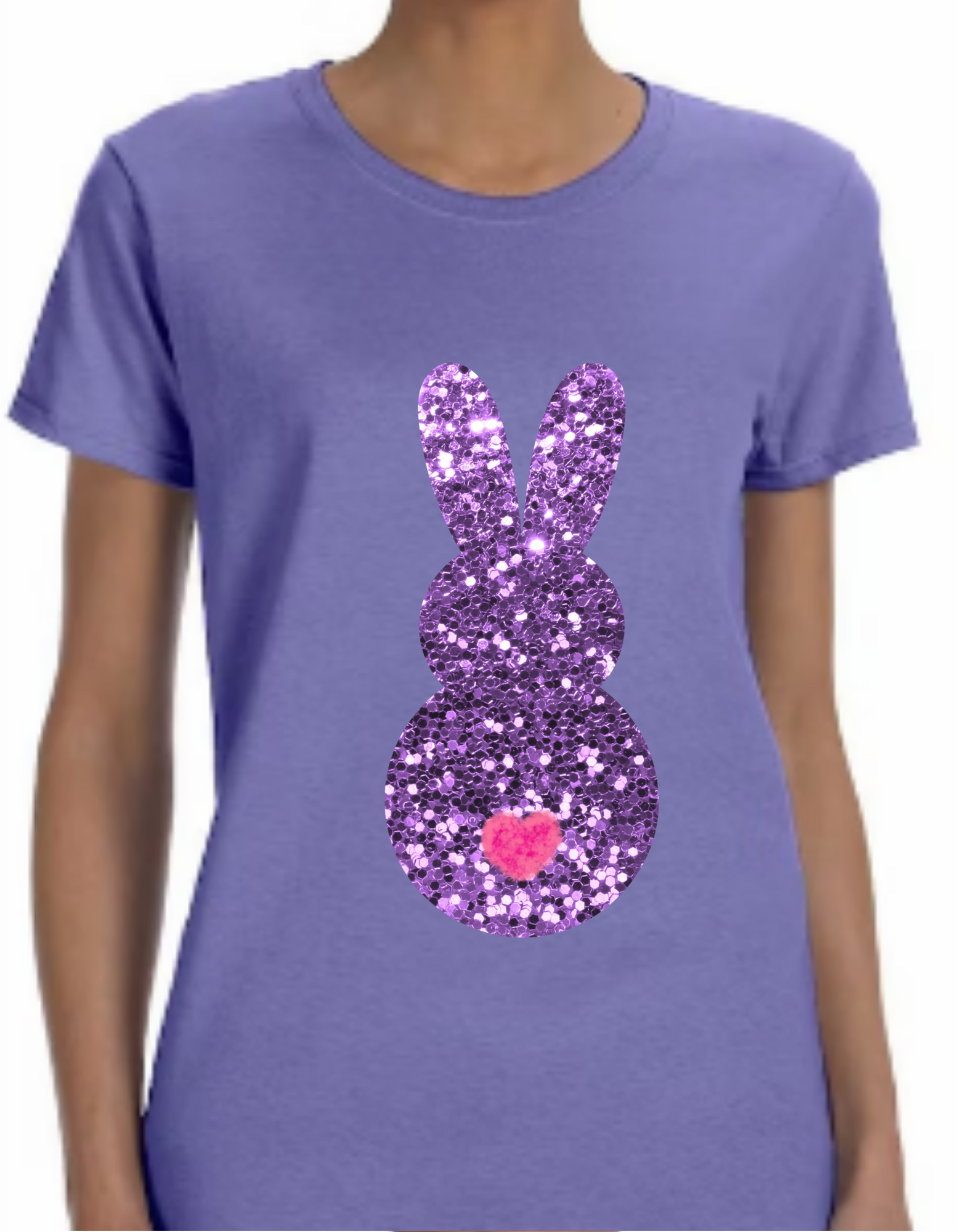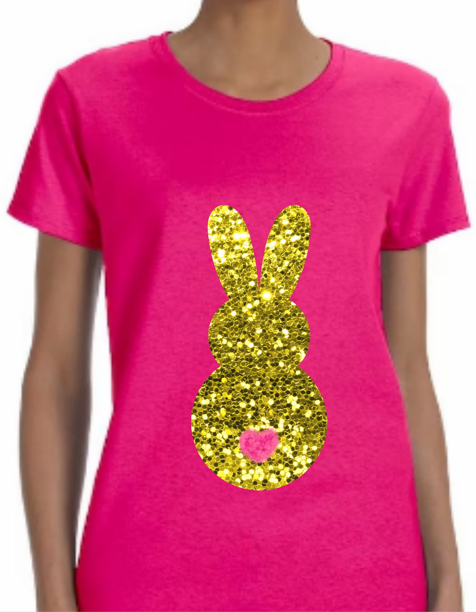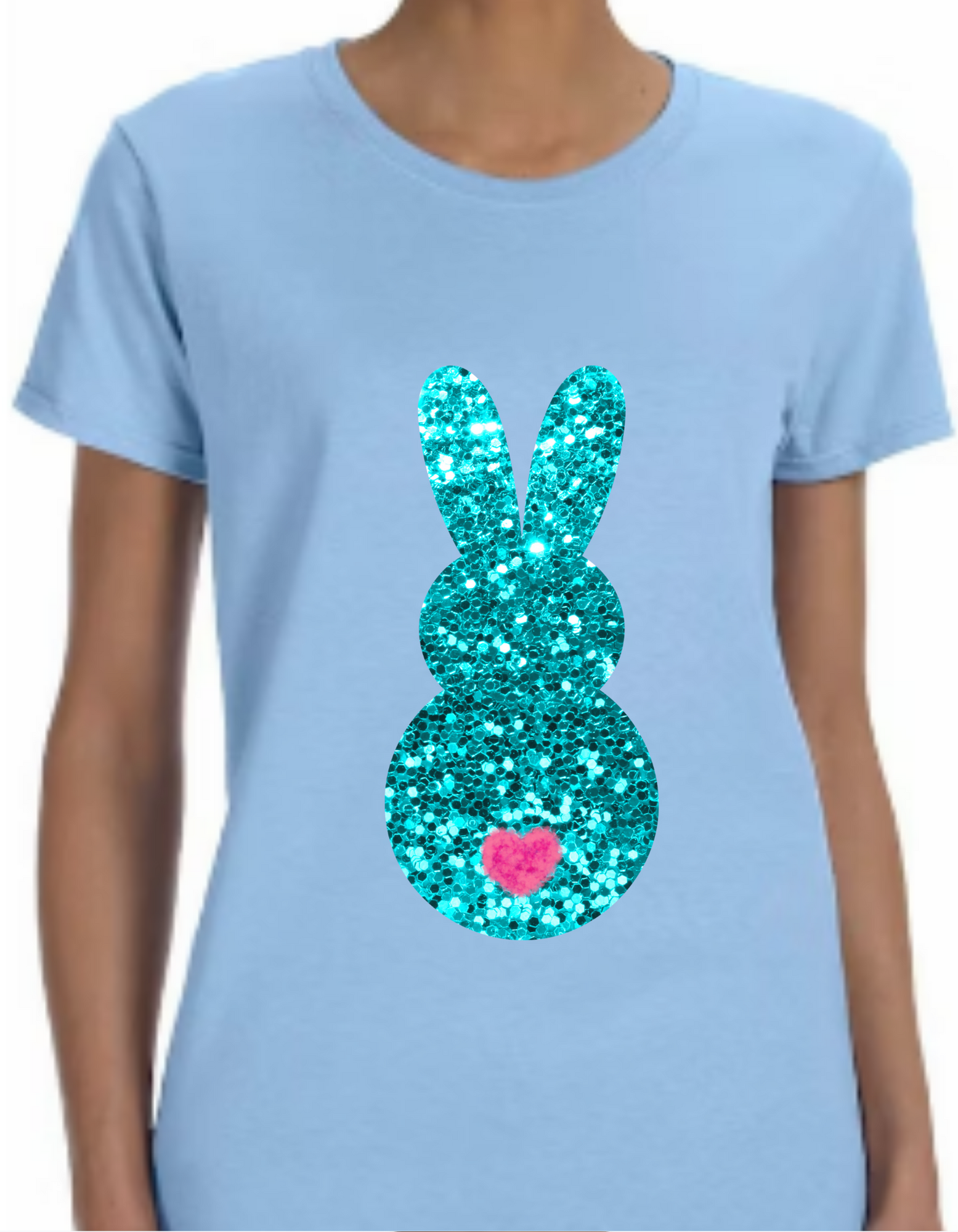 Hop, skip, and glint your way through the season with Easter's hottest fashion statement: the "Bling Bunny" t-shirt! With its fun Easter design and sparkling glittered bunny, this soft cotton t-shirt will make you shine from youth to adult! Let your inner bunny glow! 🐰