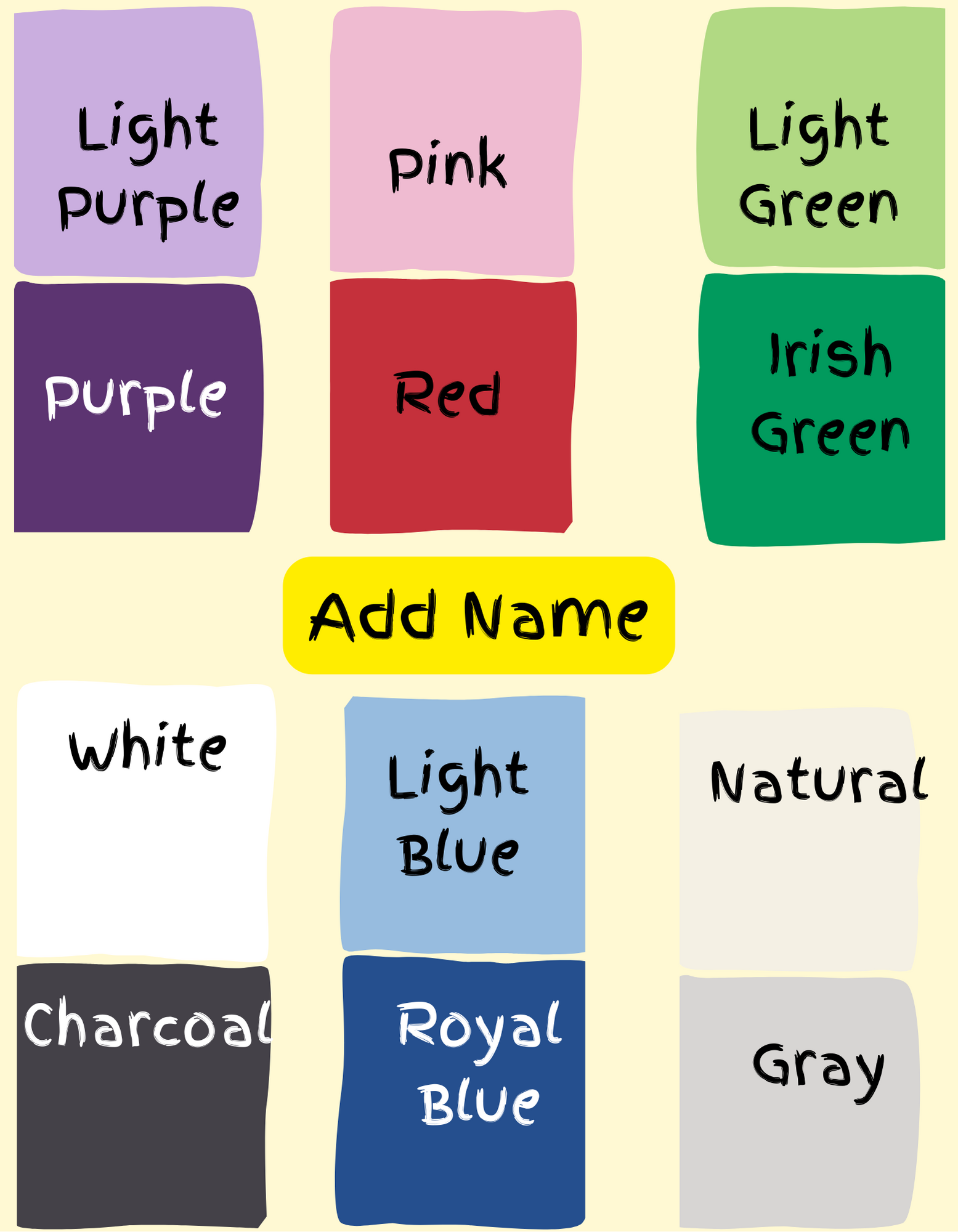 * Write in color choice at checkout in "Notes" (ex: Lt Blue).
