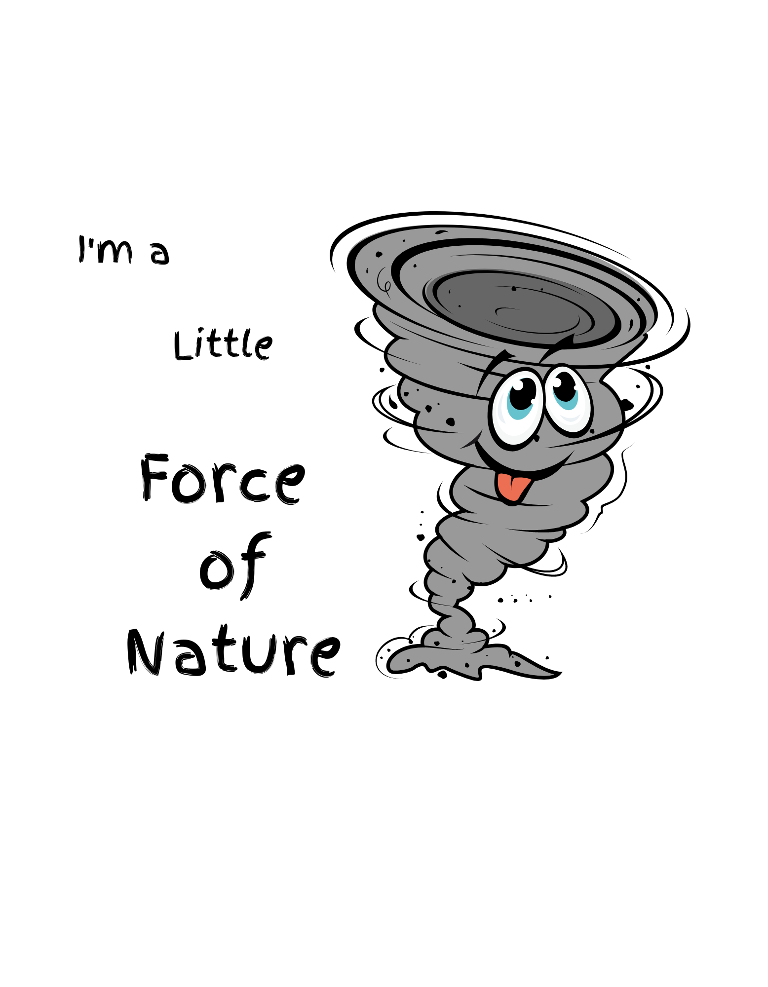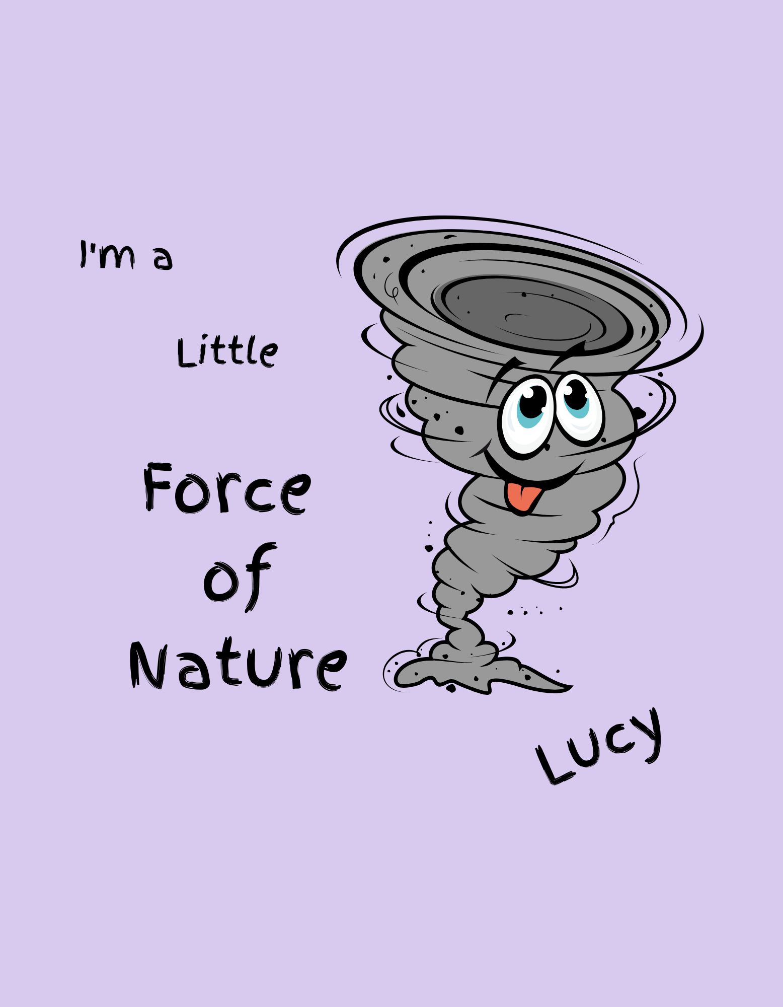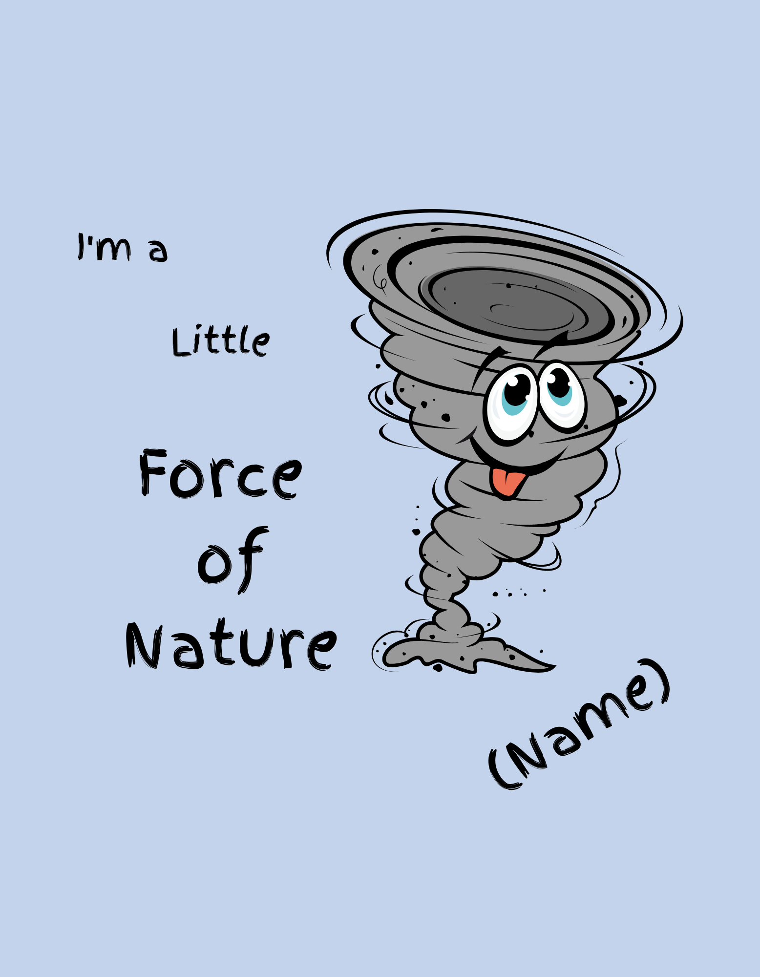 Strong winds coming! We all know that adorable little tornado. Let them be free to be that wonderful "Force of Nature" they were born to be. Let your little ones know to be proud to be themselves! Personalize with a name, optional.