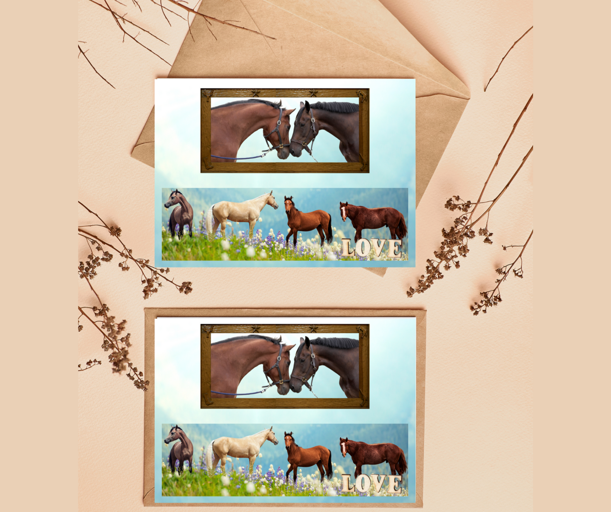 Greet your walls and loved ones with the "Horse Family" Wall Art & Note Cards. Let horses, one of the world's favorite animals, bring a timeless family portrait into your home—an inspiring reminder of how far you can go together. Start your own journey with this beloved animal today!