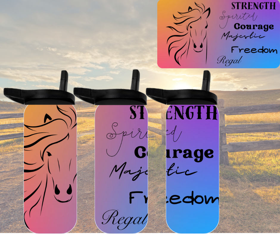 Enjoy your favorite hot or cold beverages in style with these stunning Horse Tumblers! Sublimated with one of six beautiful horse designs, these 20 oz insulated tumblers keep drinks at the perfect temperature, ensuring the perfect sip every time. Why not add a splash of style to your drink-ware today?