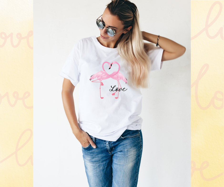 Spread love and make a statement with our "Flamingo Love" T-Shirts. Featuring two graceful flamingos and a heartfelt message, these shirts are perfect for Valentine's Day or any day you want to show your love. Made with soft and comfortable material, you'll feel as good as you look.