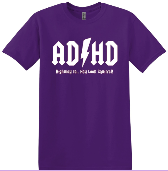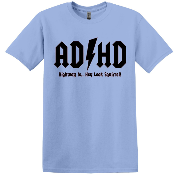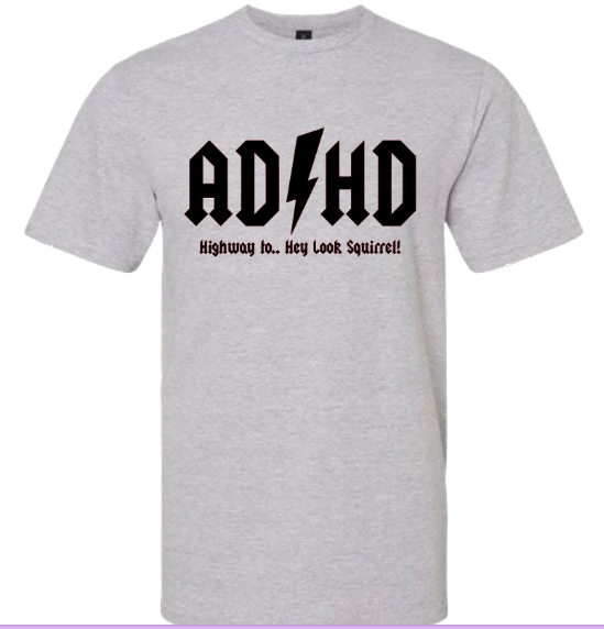 "Rock out in this ADHD t-shirt, inspired by the legendary band AC/DC's classic album Highway to Hell. Featuring a clever play on words, this shirt is perfect for those who have a tendency to get easily distracted. Don't miss out, get yours now!"