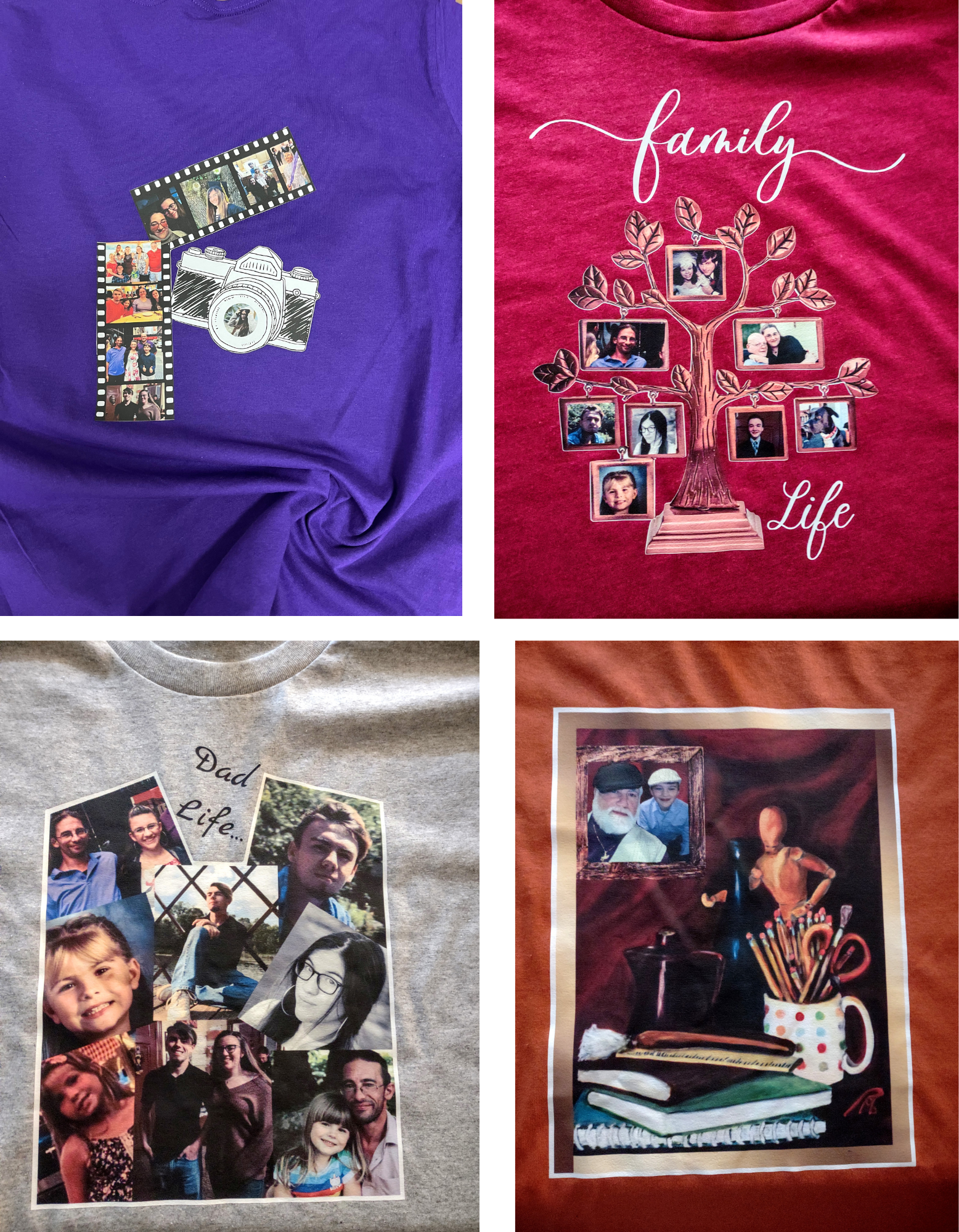 Transform your treasured memories into unique works of art with "From Life to Art" Customized Wearable Art! With this unique service, you can immortalize your child's artwork or family photos on a t-shirt, long sleeve shirt, crew sweatshirt, or hoodie. Create your own wearable art today!