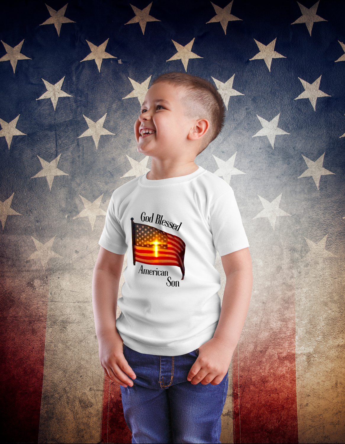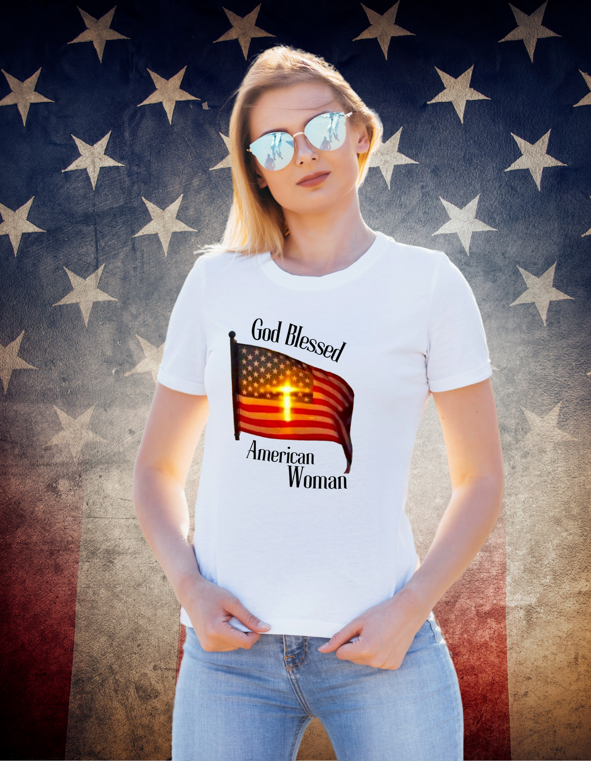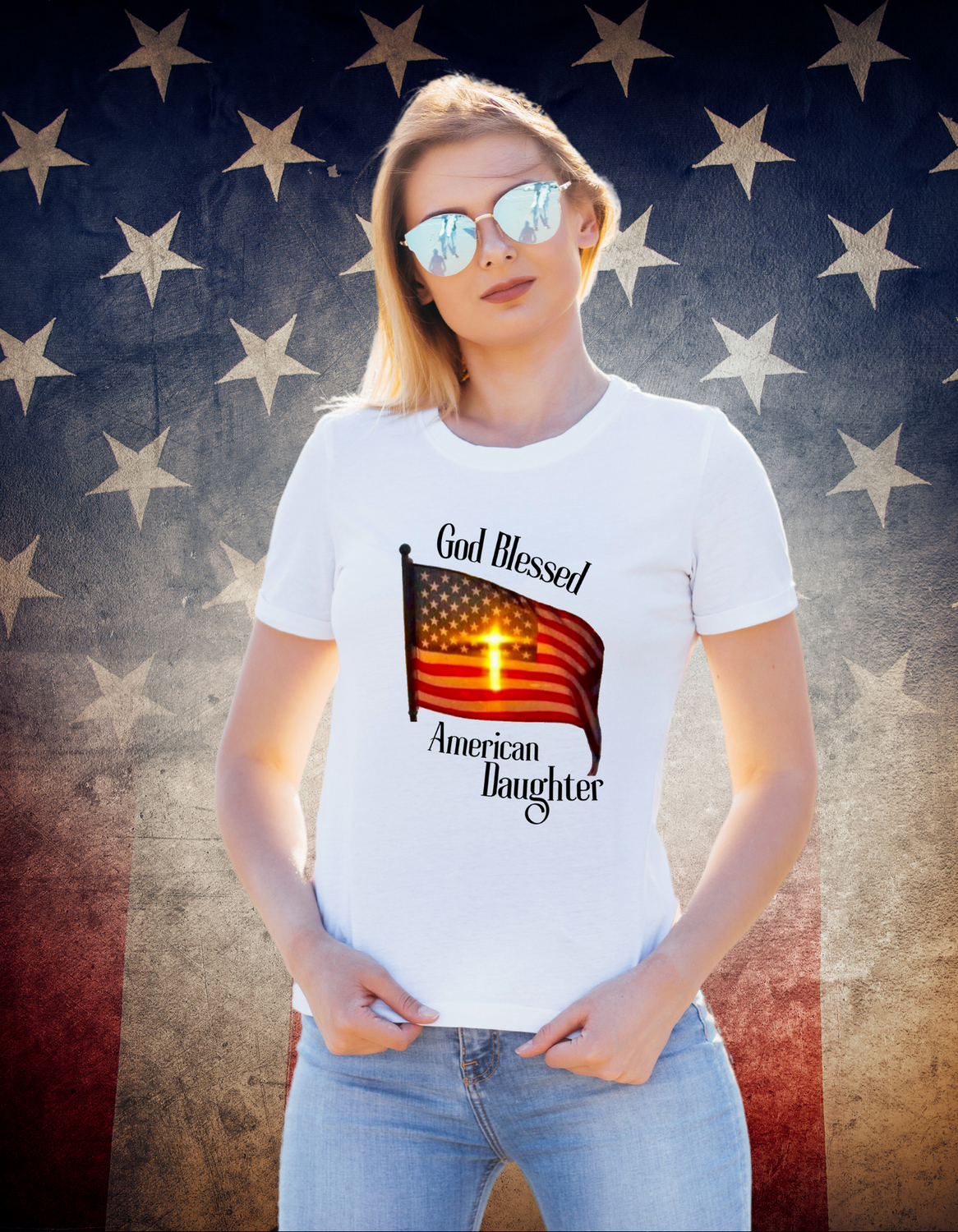 Show your patriotism with our exclusive "God Blessed American" collection of T-shirts. Crafted in the U.S.A., these Youth & Adult sizes are perfect for displaying your American pride & faith. Four design options — Man, Woman, Son, & Daughter - let you honor our veterans and country in style! Who says patriotism can't be fashionable?