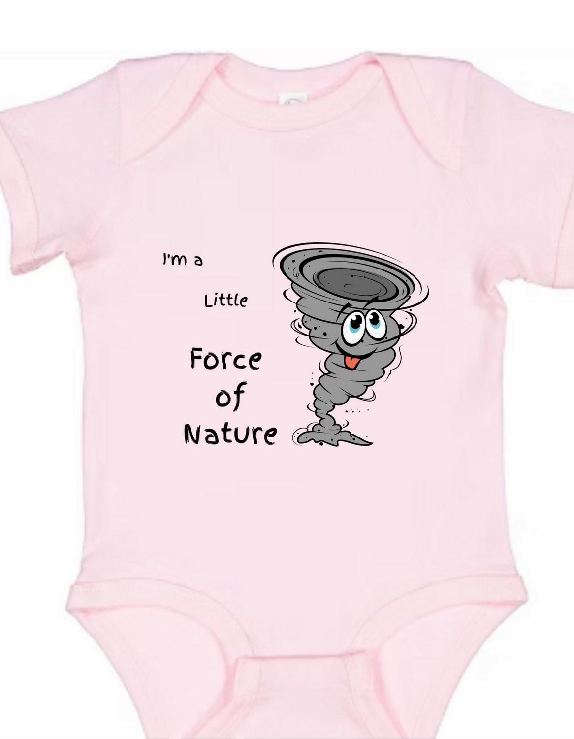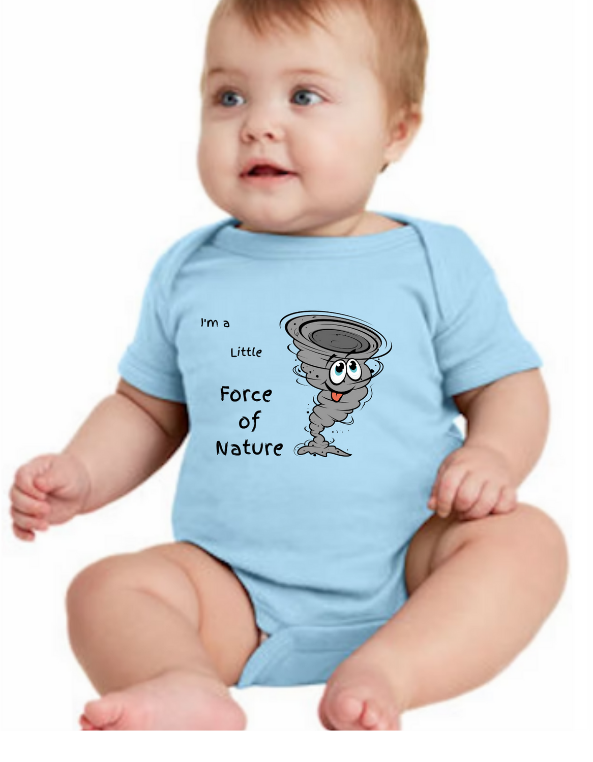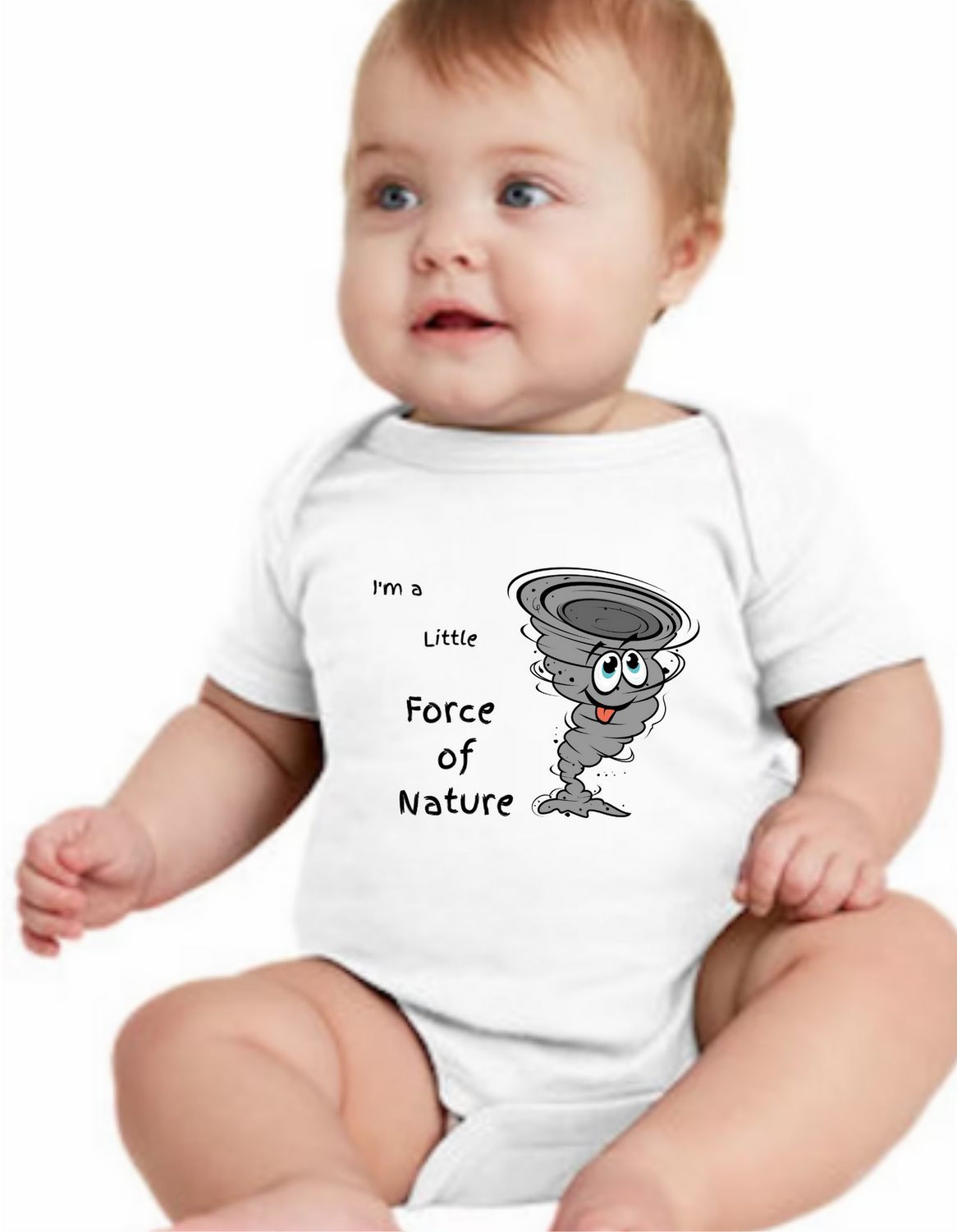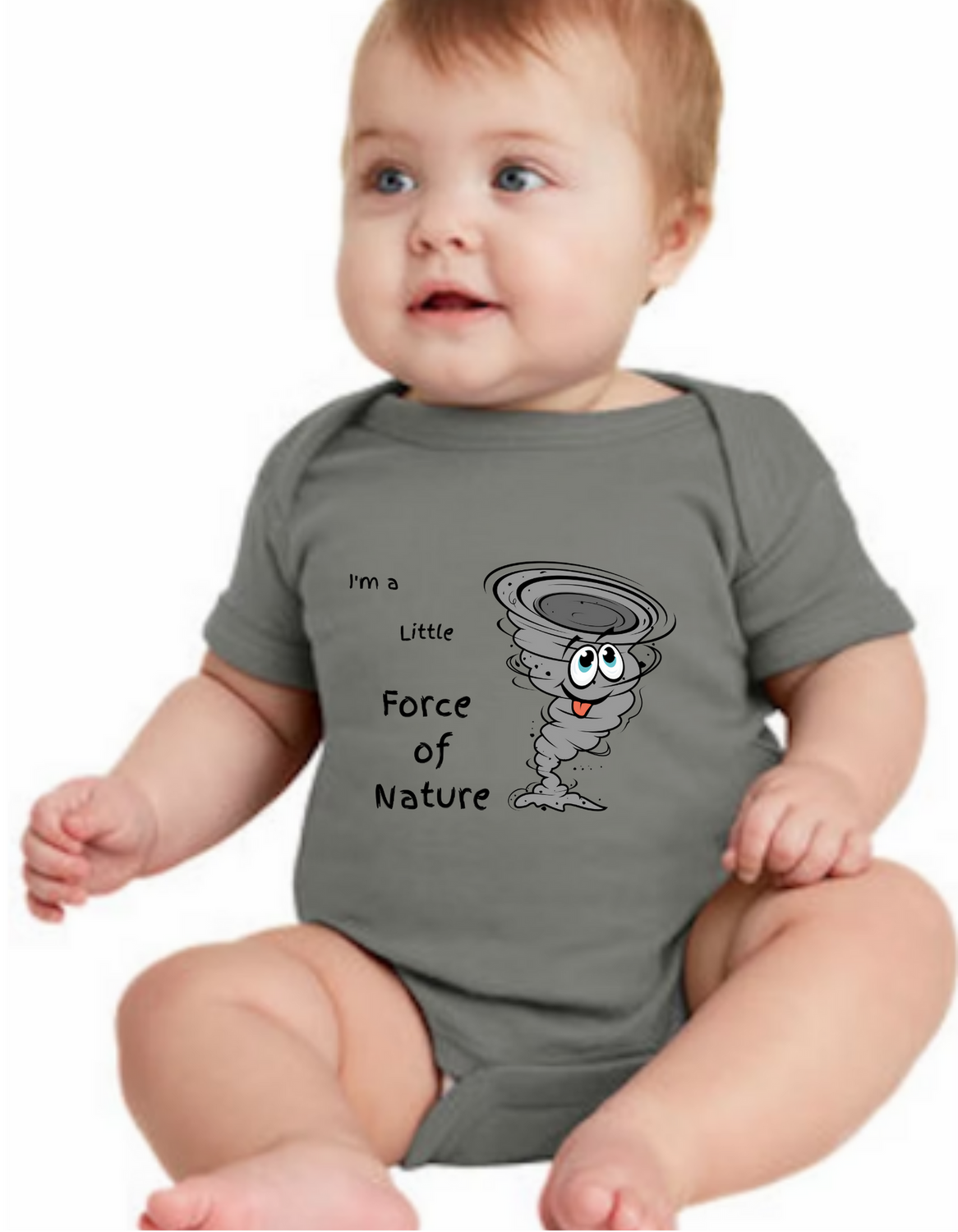 Outfit your little nugget with the perfect statement piece! Our "Little Force of Nature" Onsie is sure to make your tiny tot look too cute for words. Let them show off their spark and inner strength with this snug onesie. Baby gets to rock a force of nature, you get frontrunner in the cuteness competition? Win-win!