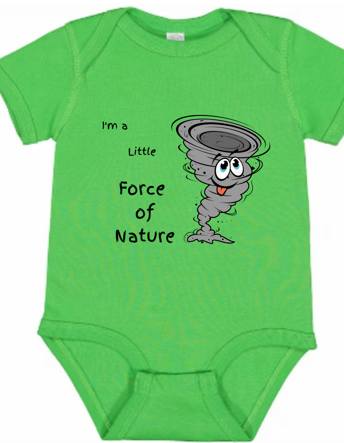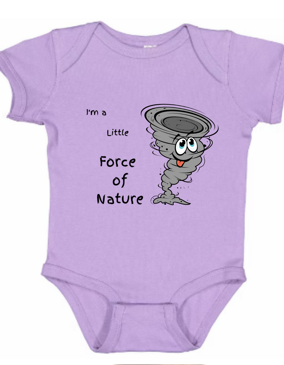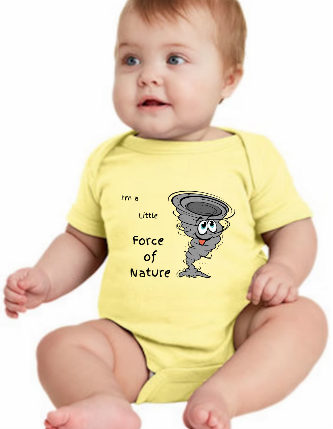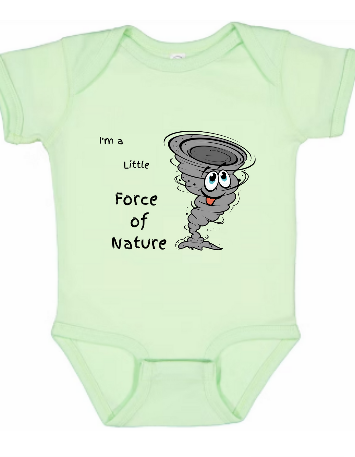 Outfit your little nugget with the perfect statement piece! Our "Little Force of Nature" Onsie is sure to make your tiny tot look too cute for words. Let them show off their spark and inner strength with this snug onesie. Baby gets to rock a force of nature, you get frontrunner in the cuteness competition? Win-win!