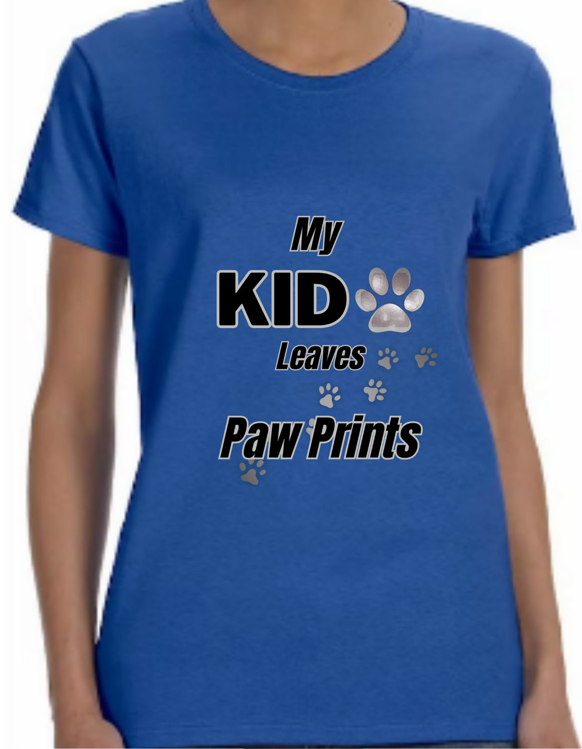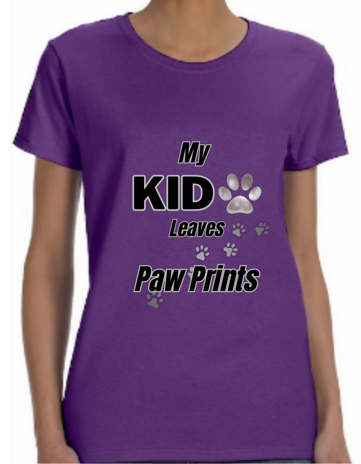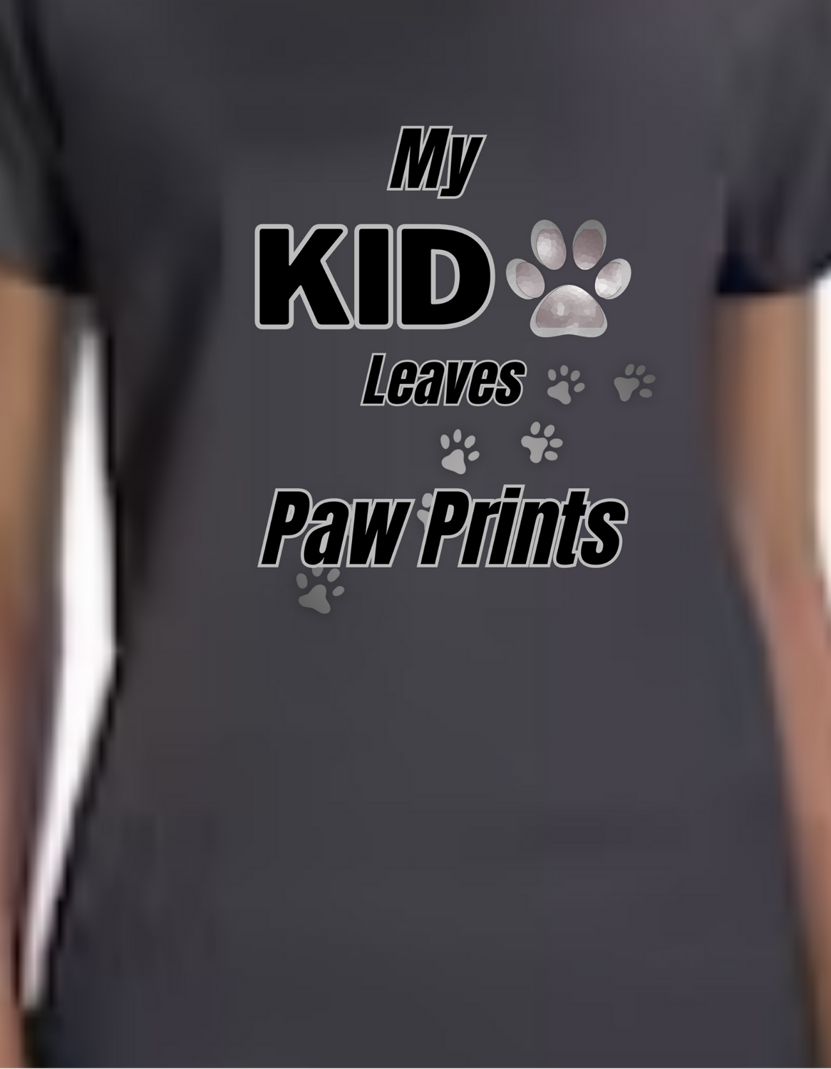 "My Kid Leaves Paw Prints" Adult T-Shirt
