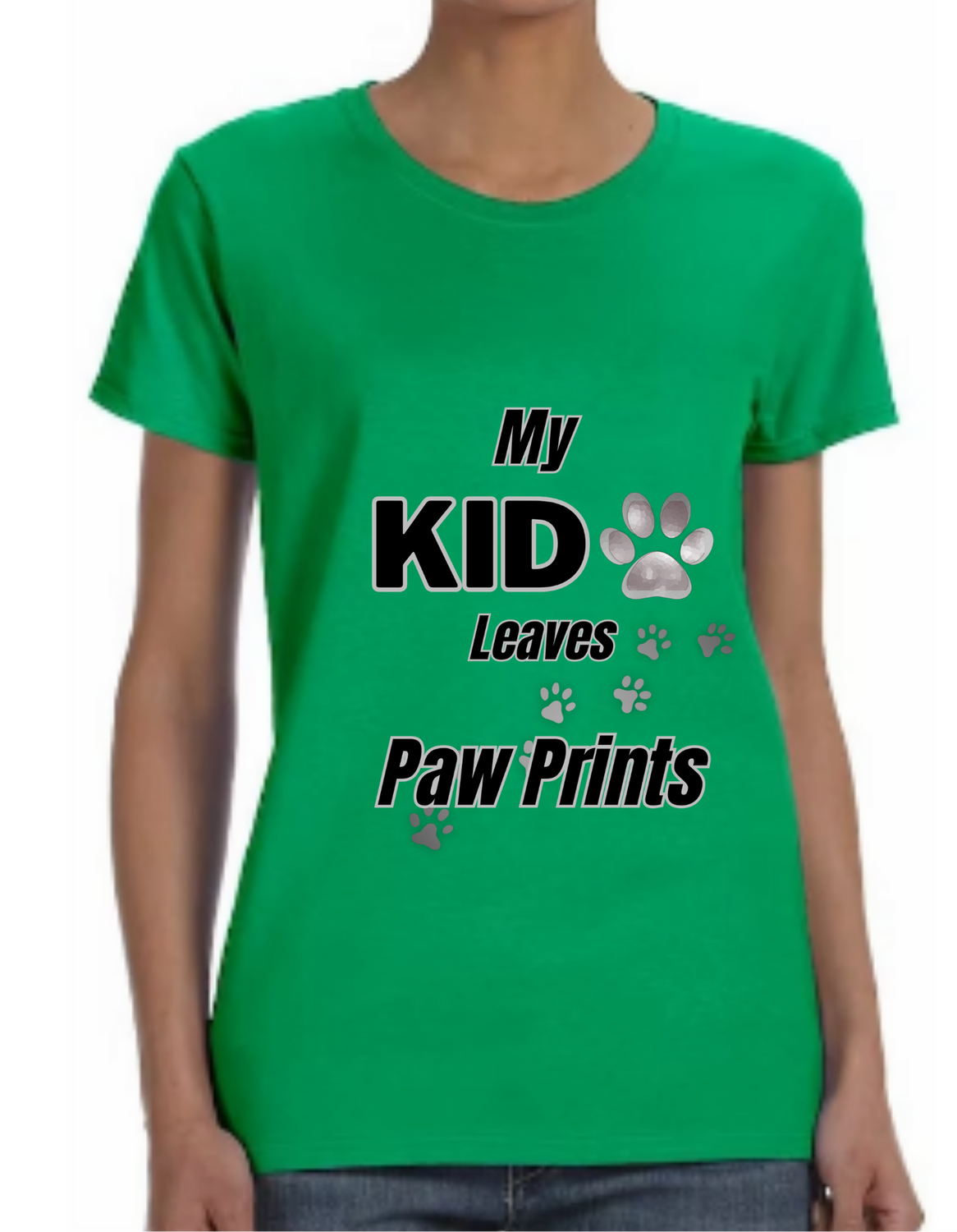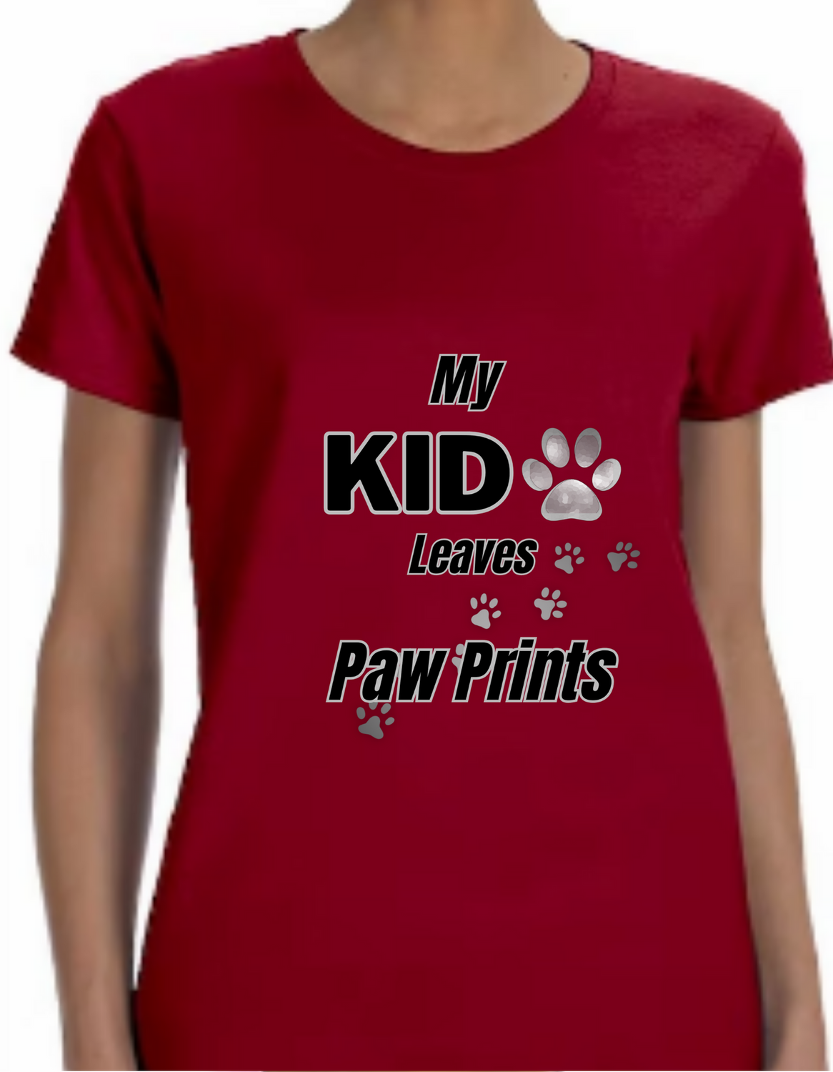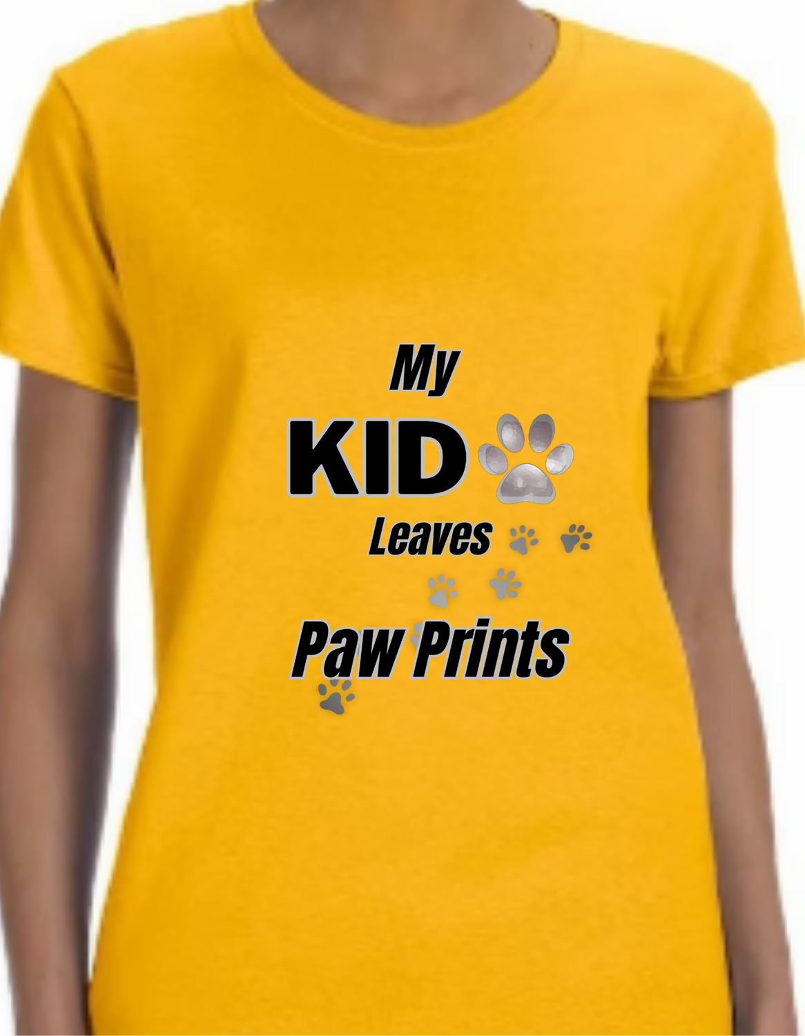 "My Kid Leaves Paw Prints" Adult T-Shirt