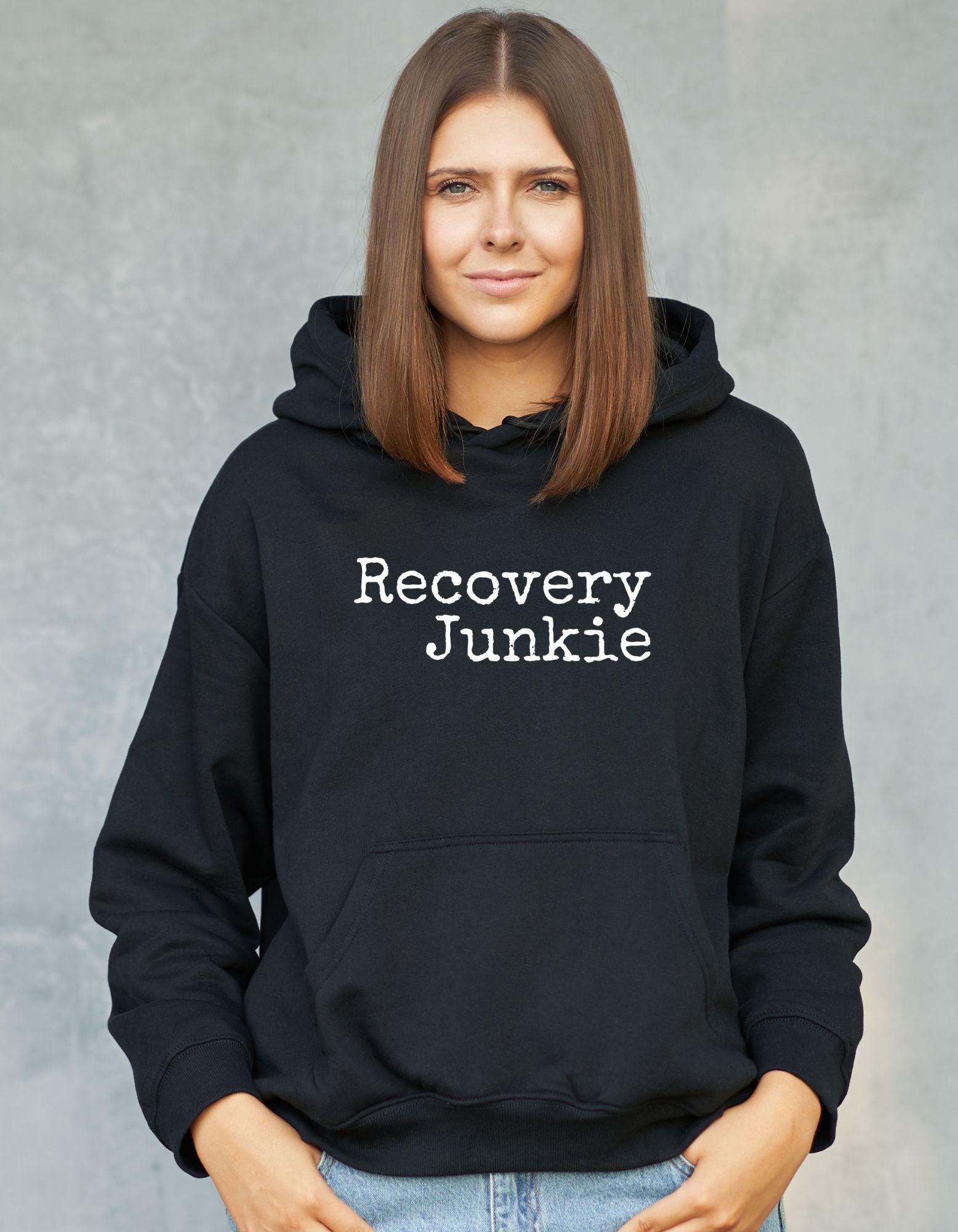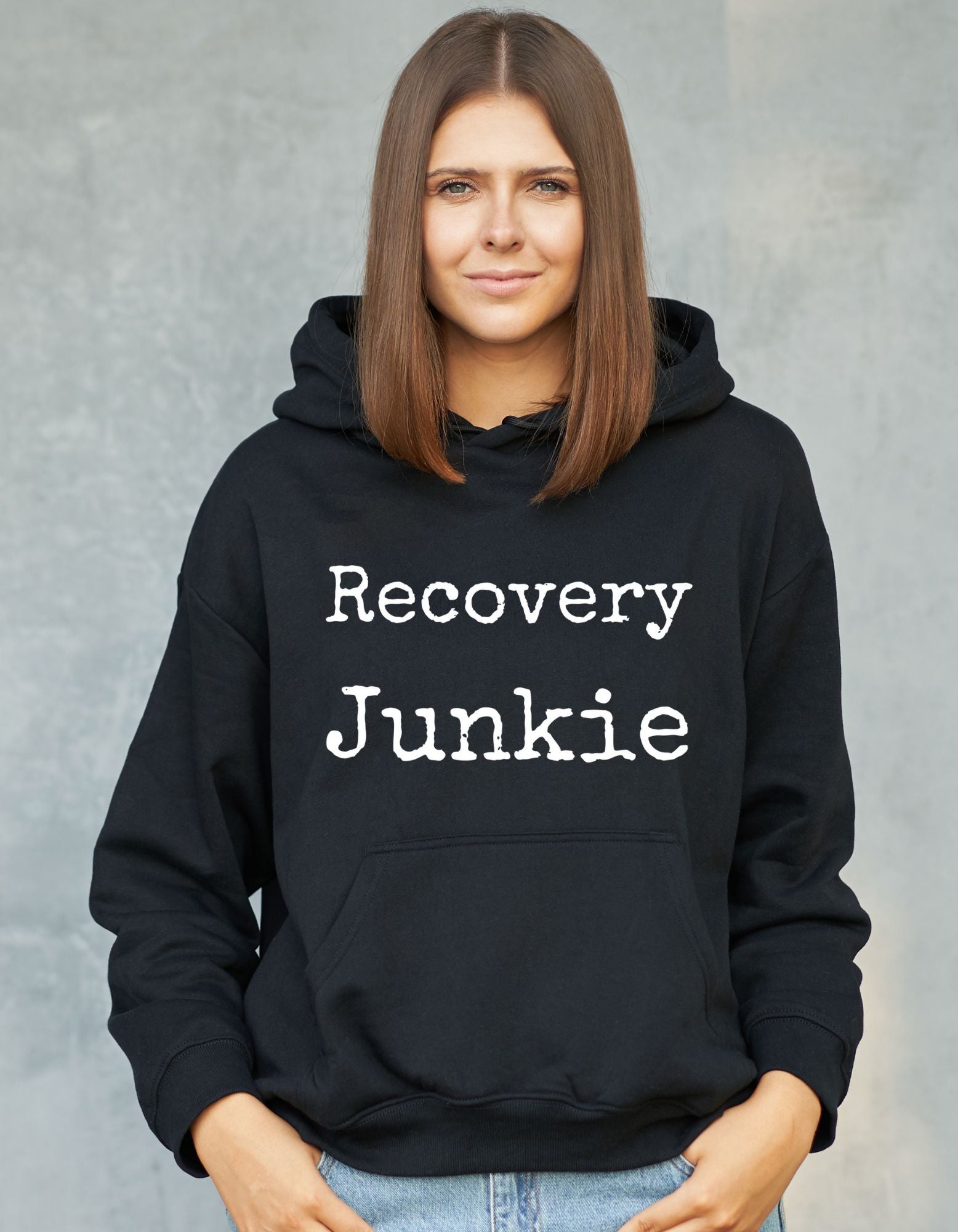 Embrace your journey towards self-care with our "Recovery Junkie" adult hoodie. Show off your accomplishment and be proud of your progress. From casual wear to a conversation starter, this hoodie celebrates your dedication to self-care. Be confident, be proud, be a Recovery Junkie.