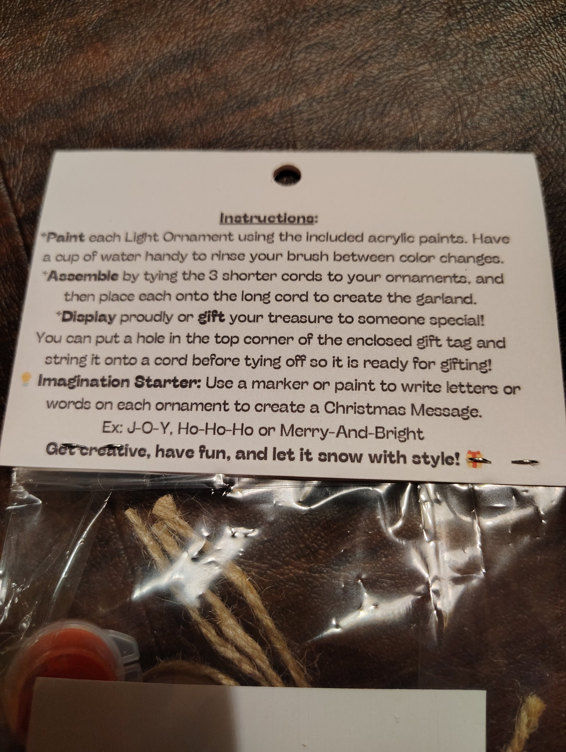 Light up the holiday season with this festive “Merry & Bright” Mini Garland Kit! Includes 3 wooden Christmas light ornaments, 3 ornament cords, 1 long garland cord, jingle bells, glitter pack, custom gift tag, and an 8-color paint kit with mini brush. A color palette guide and idea starters inspire creativity, helping you craft a sparkling mini garland perfect for mantels, trees, doorways, or tiered trays.